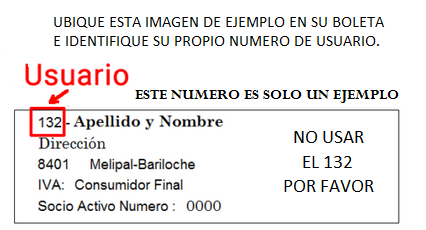 Y RECUERDE QUE (EN ESTE CASO) EL NRO DE USUARIO ES PARA LA BOLETA ELECTRONICA Y NO TIENE RELACION CON EL NRO DE USUARIO CATASTRAL NI DE SOCIO.